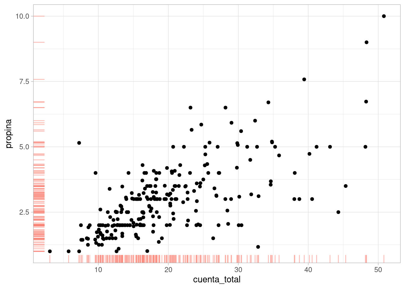 propinas <- read_csv("./datos/propinas.csv")Podríamos comenzar haciendo: