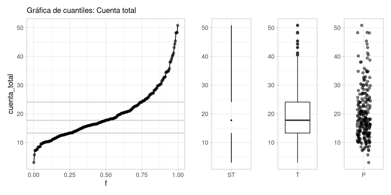 labs(subtitle = "Gráfica de cuantiles: Cuenta total") +