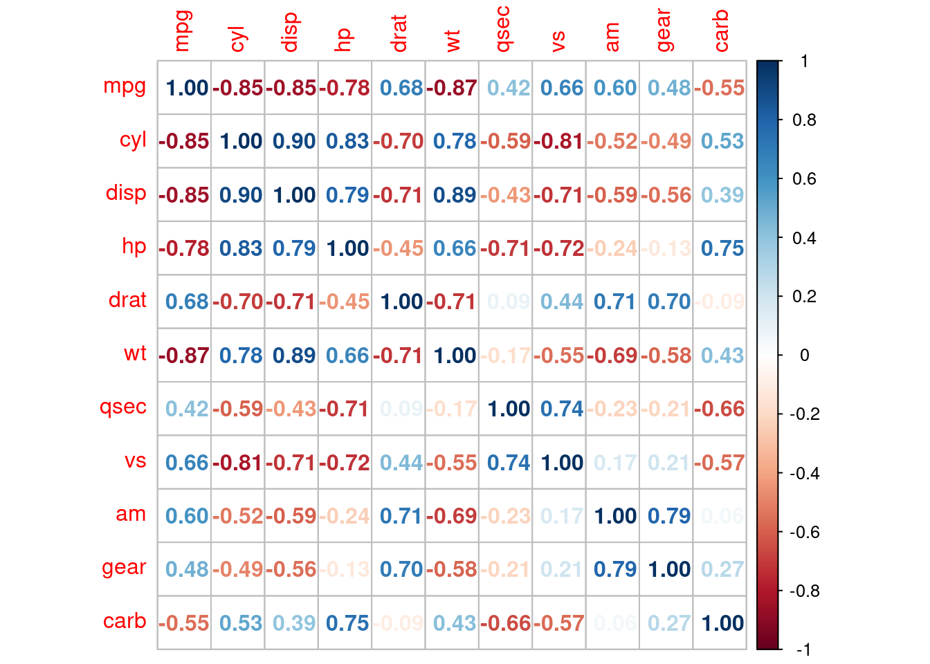 - Otro ejemplo: la variable gear (número de velocidades) no tiene una correlación