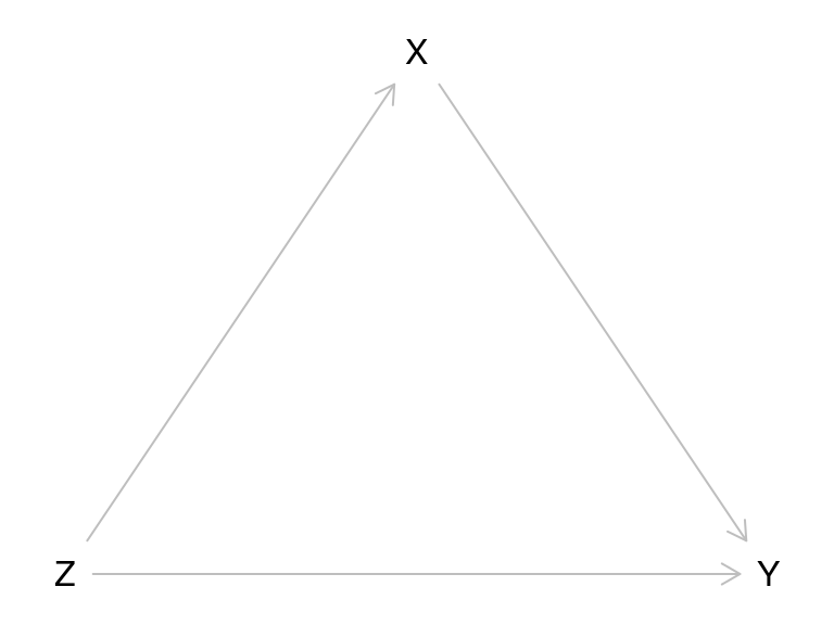 \[f_{X,Y,Z} = f_Z f_{X|Z} f_{Y|X,Z} = f_Z f_X f_{Y|X,Z}.\]