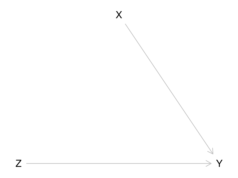En este caso, no es necesario especificar la condicional de \(X\) dado \(Z\), pues estas dos son variables independientes. Pondríamos entonces simplemente