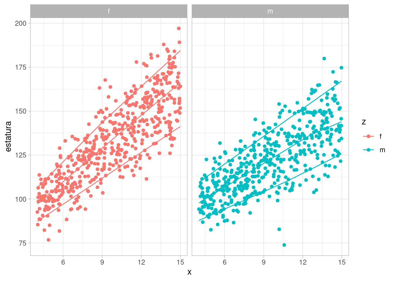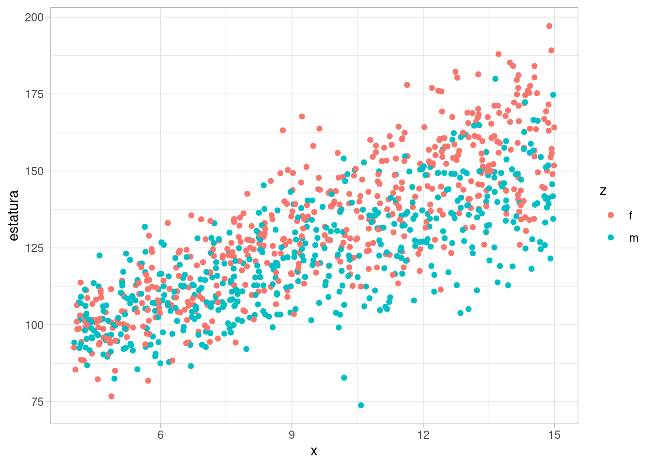 ggplot(datos_tbl, aes(x = x, y = estatura, colour = z)) +