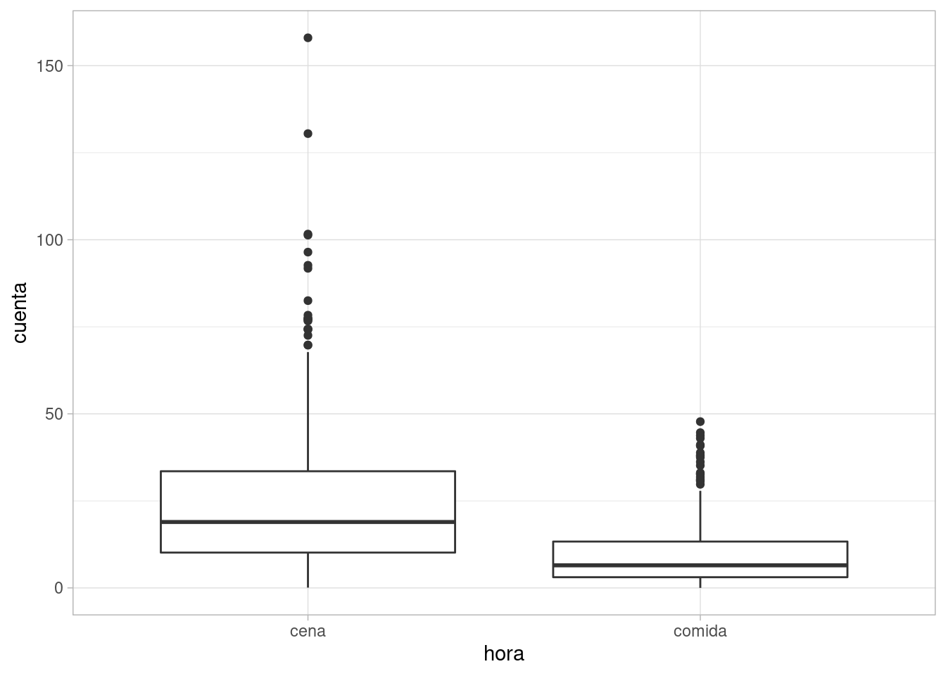 Supongamos que \(X\) es la hora del día (comida y cena) y que \(Y\) es el tamaño de la cuenta.