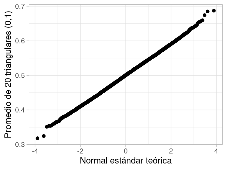 Repetimos para la distribución triangular. Los cuantiles que calculamos arriba son: