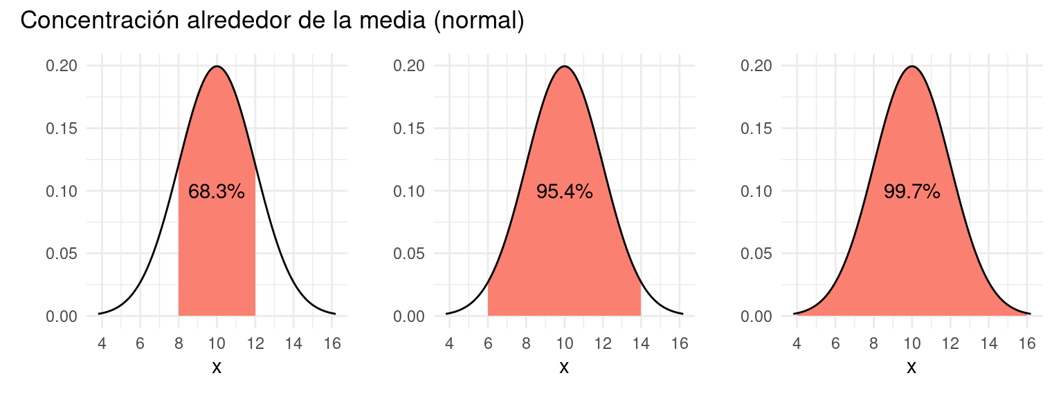 paneles + plot_annotation(title = "Concentración alrededor de la media (normal)")
